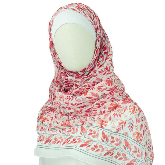 Hijab Kopftuch- Partita in Sunset Rot mit Grau